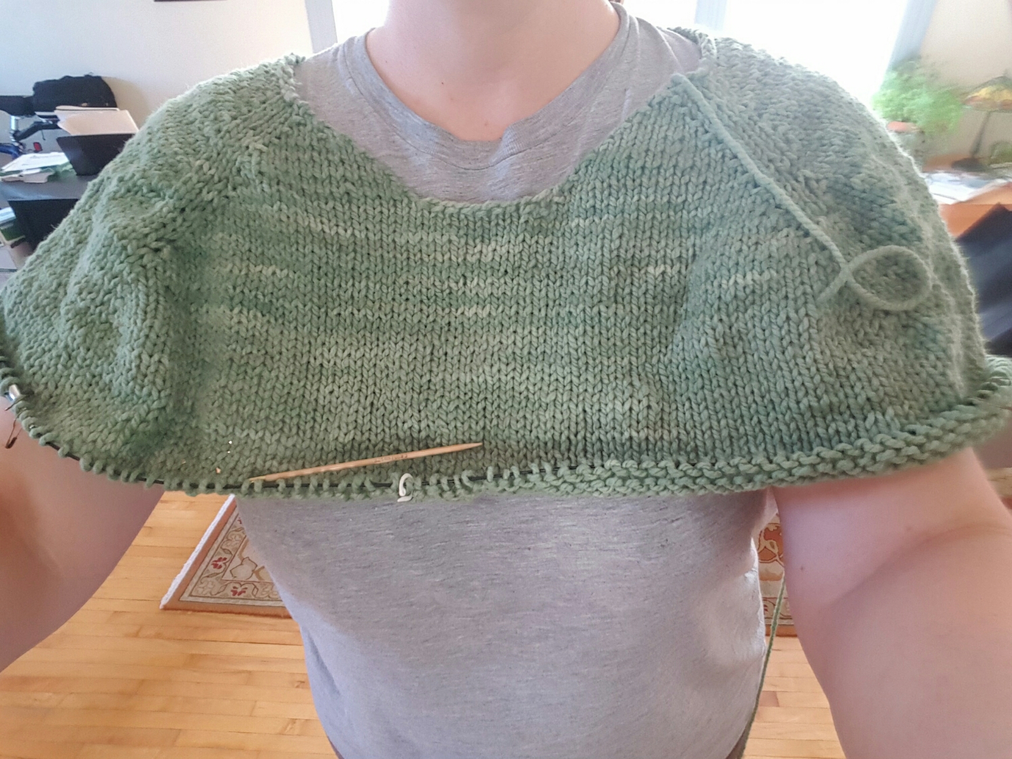 I am concerned my sweater may be a bit too big since my shoulders are puckering. I am hoping this will resolve itself when I start knitting my sleeves. If it doesn’t, I will be ripping back most of my sweater so I can get it right.