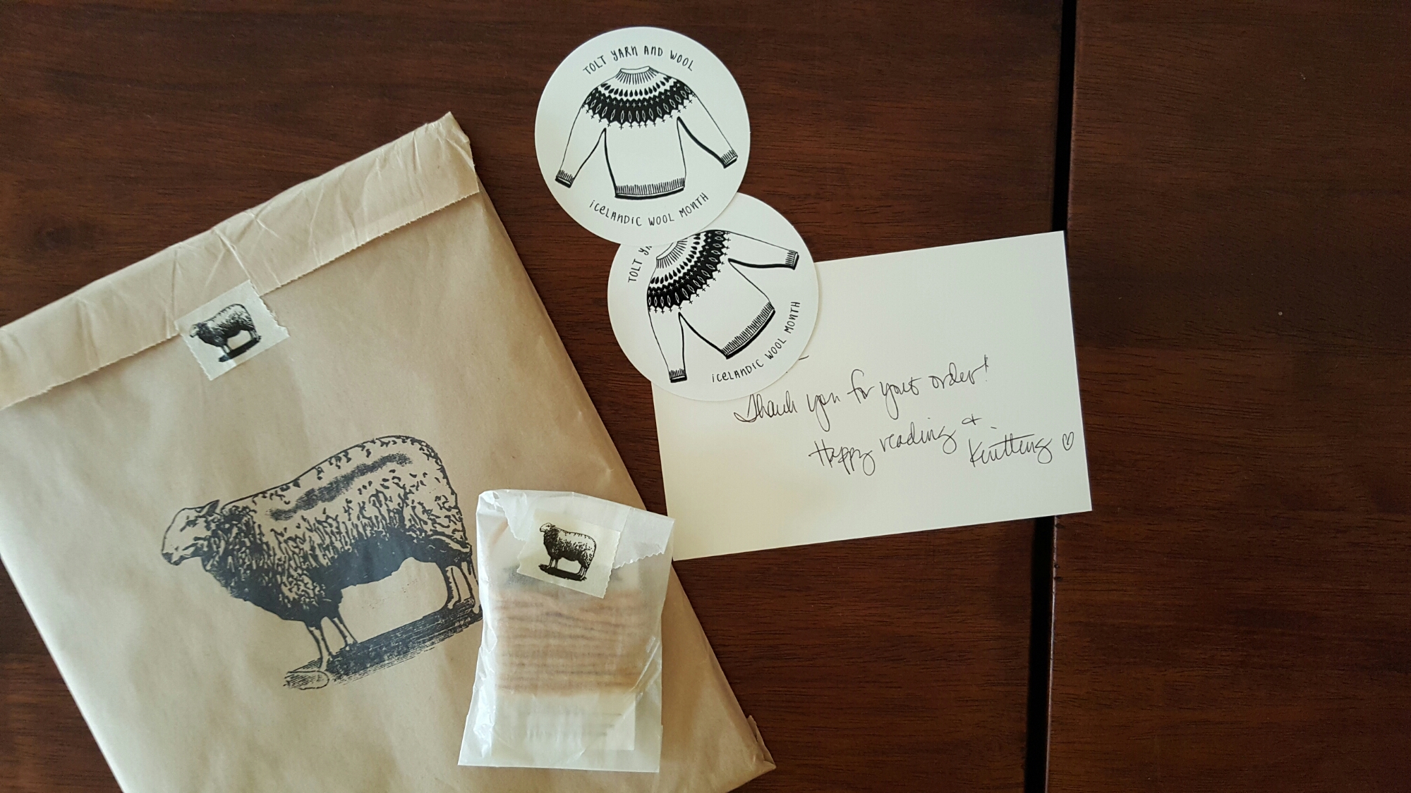 Everything was packaged so nicely. There was a little sample of the yarn and a lovely thank you note.