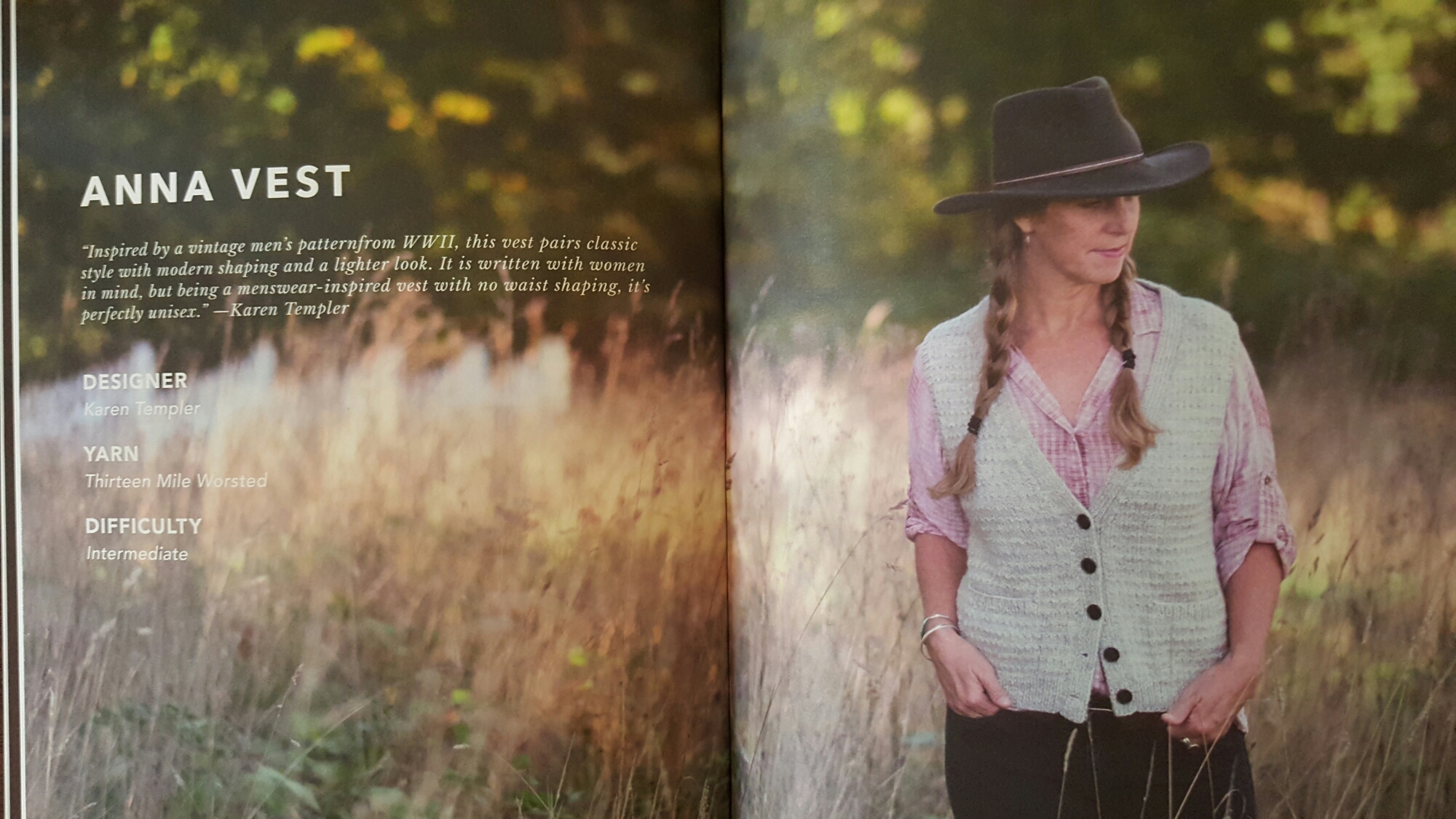 The first is Karen Templer’s, Anna Vest. I never thought I would want to knit a vest for myself. Then I saw some knitters FO photos of this vest and now, I must make one!